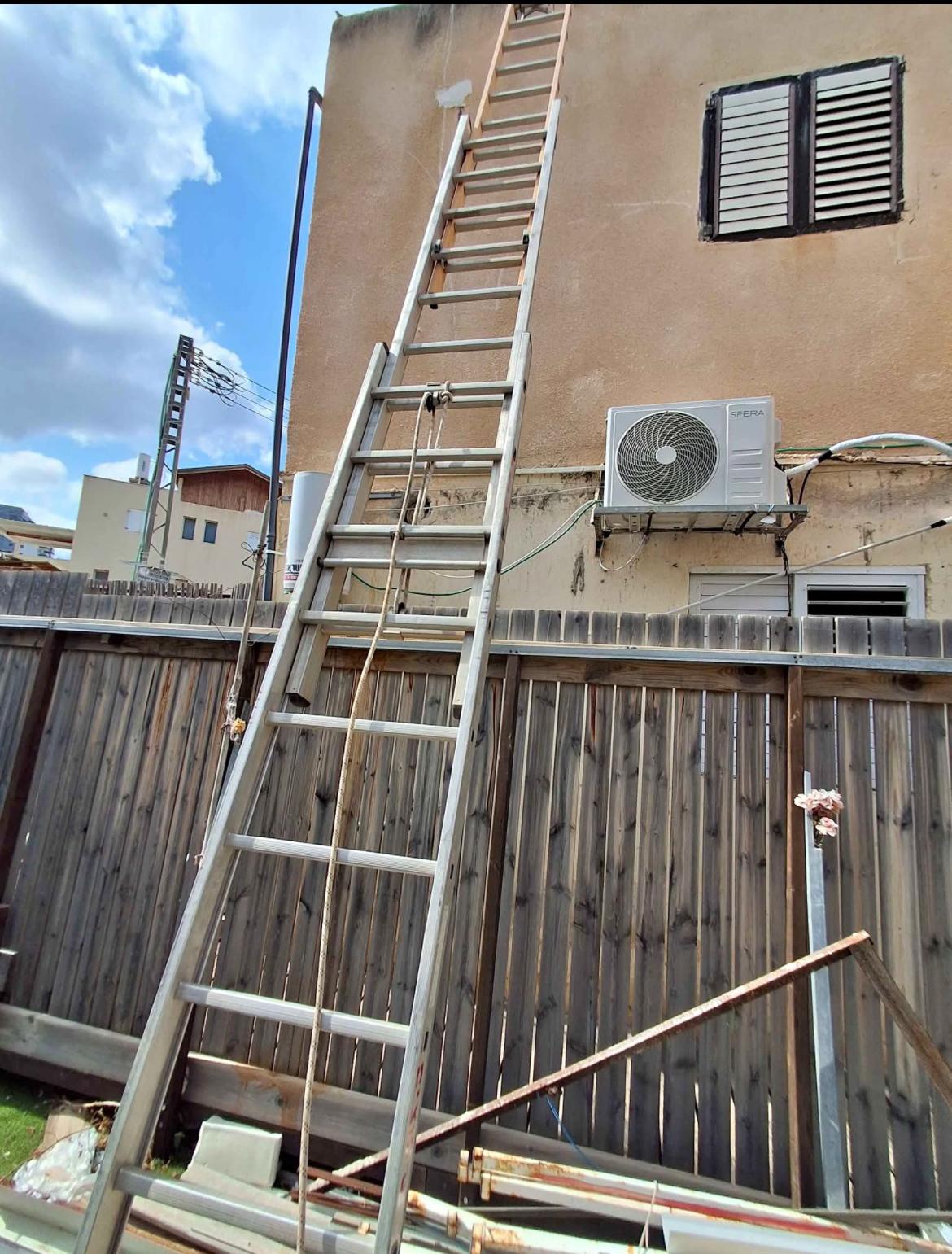 • סולם ג' 12 שלבים – גובה עבודה כ-5–6.5 מטר – מושלם לעבודה חיצונית בינונית, קירות, חלונות, גיזום נמוך-בינוני